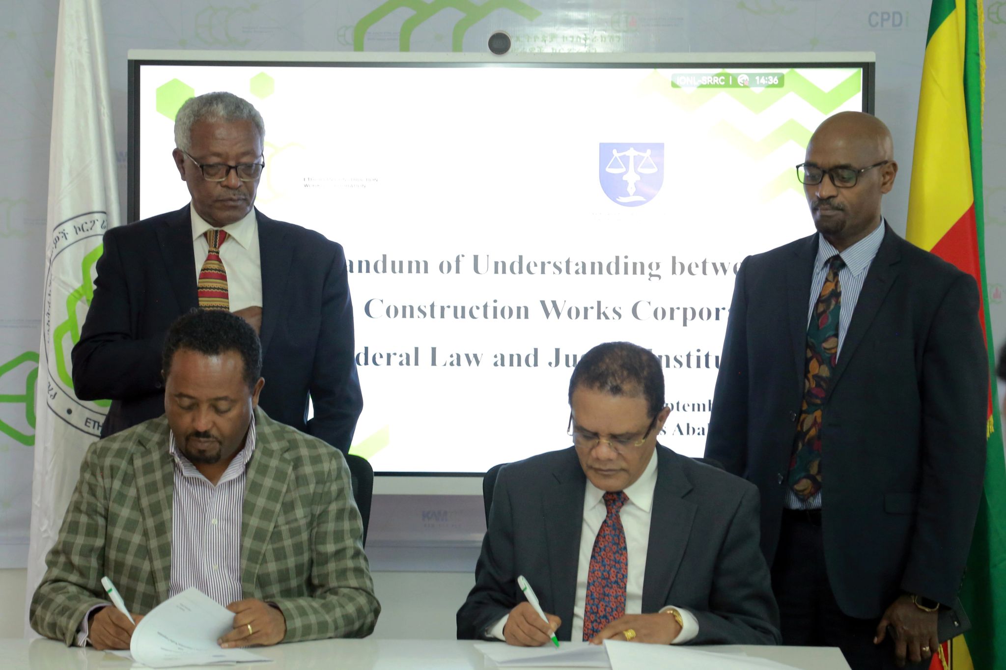 The Ethiopian Construction Works Corporation (ECC) and the Federal Justice and Law Institute have signed a Memorandum of Understanding (MoU) to enhance cooperation on legal and justice-related matters.